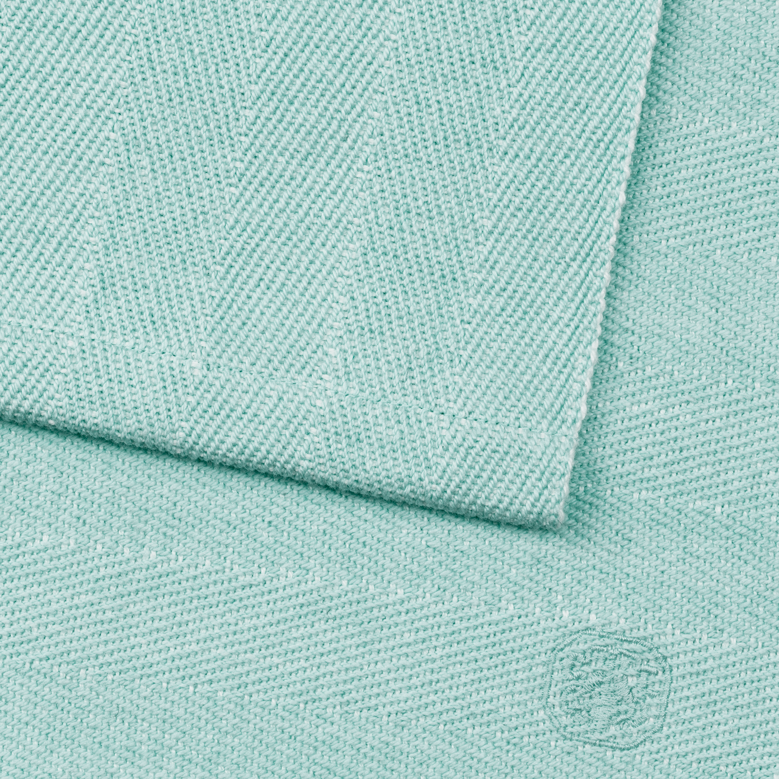 Skapa en elegant dukning med Herringbone-bordstabletterna i färgen Deep Glass. Bordstabletterna är vävda i 100 % kraftig bomull. Vävmetoden ger det karaktäristiska fiskbensmönstret och de kraftiga garnerna gör att bordstabletterna ligger stadigt på bordet. De har en liten broderad logotyp i samma färg som väven. Den klara blågröna nyansen Deep Glass är inspirerad av färgen på råglas.