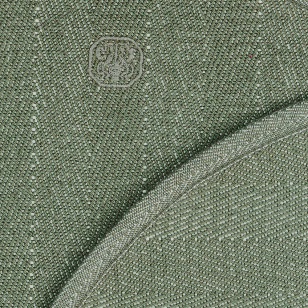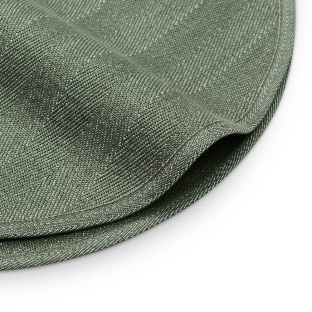 Den runda Herringbone-bordstabletten är en bordstablett i fiskbensväv av 100 % bomull. Bordstabletten ligger stadigt på bordet och har en liten broderad Georg Jensen Damask-logo. Varianten Mineral Green är ett ljusgrönt vårtecken.