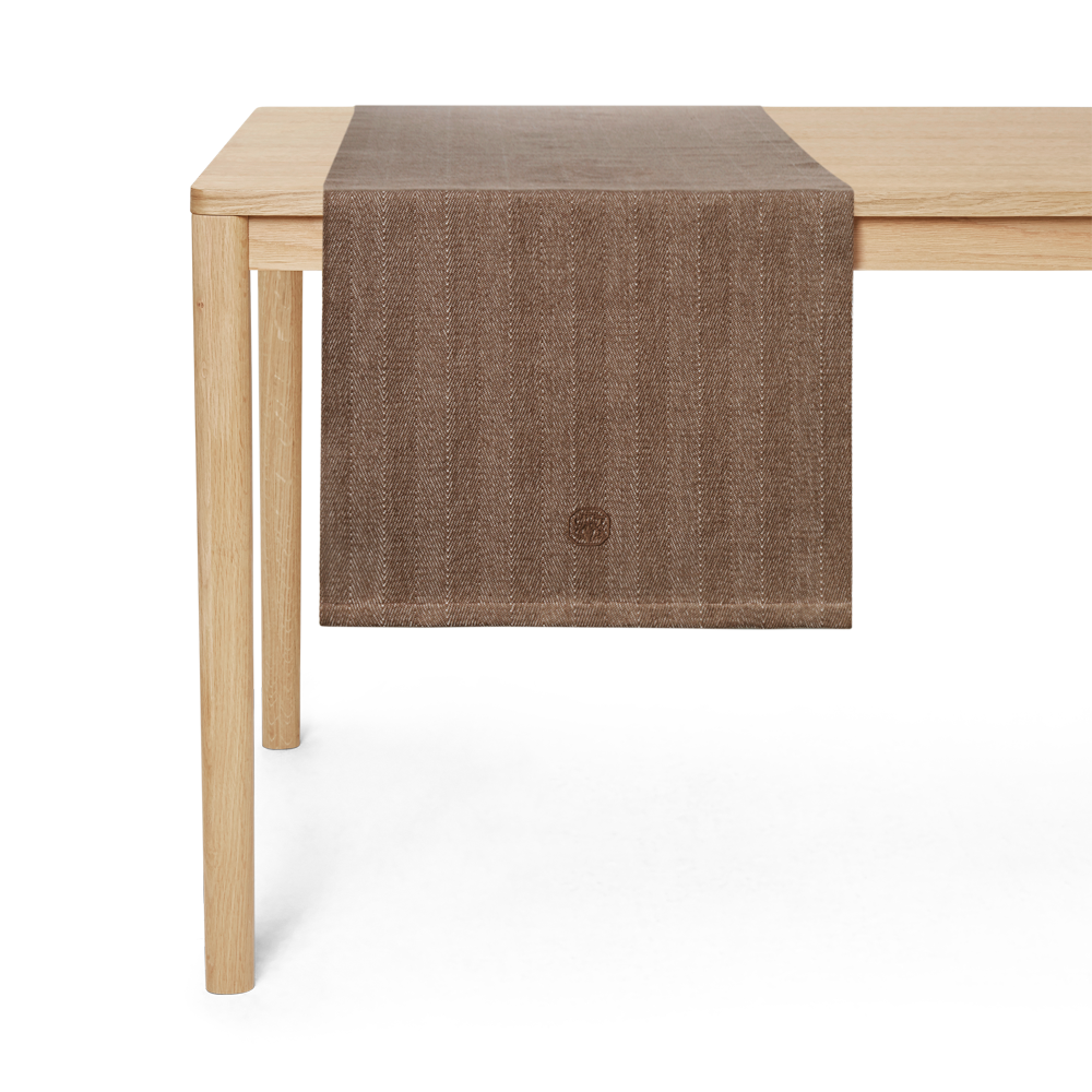 Herringbone är en fiskbensvävd bordslöpare i 100 % kraftig bomull. Bordslöparen ligger fint på bordet och har en liten broderad Georg Jensen Damask-logo som en viktig detalj. Färgen Walnut är en nötbrun klassiker i Georg Jensen Damasks kollektion.