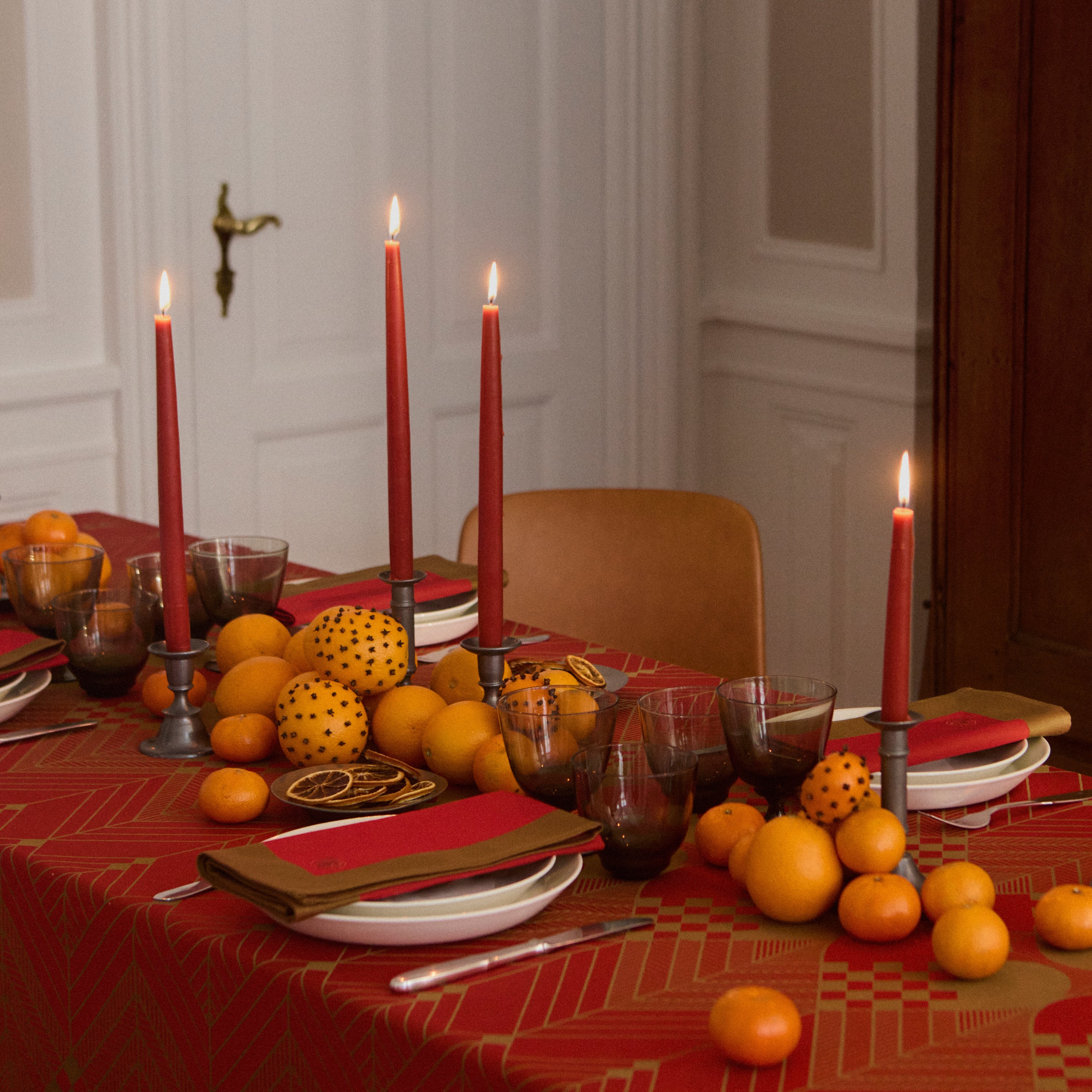 Den klassiska färgkombinationen i julrött och guld har en speciell plats i hjärtat hos många och har funnits i vår kollektion ända sedan lanseringen 1975. I all sin vackra enkelhet värnar Julduken i den ursprungliga färgkombinationen om traditionerna. Matchande tygservetter fulländar dukningen.
