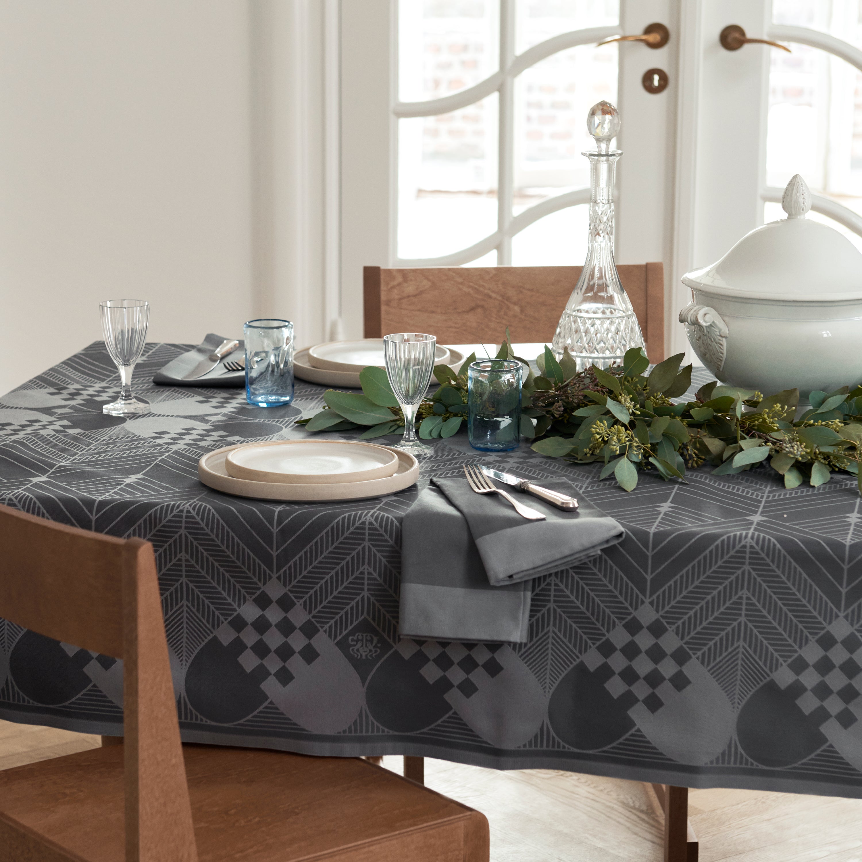 I Winter Grey får Julduken ett särskilt elegant uttryck när vinterhimlens fina grå nyanser möts i den ikoniska designen. Färgen utgör en bra bas för julpynt i alla tänkbara former och nyanser, från naturmaterial, snövita toner och gyllene mässing till årets trendfärg. Matchande tygservetter fulländar uttrycket.