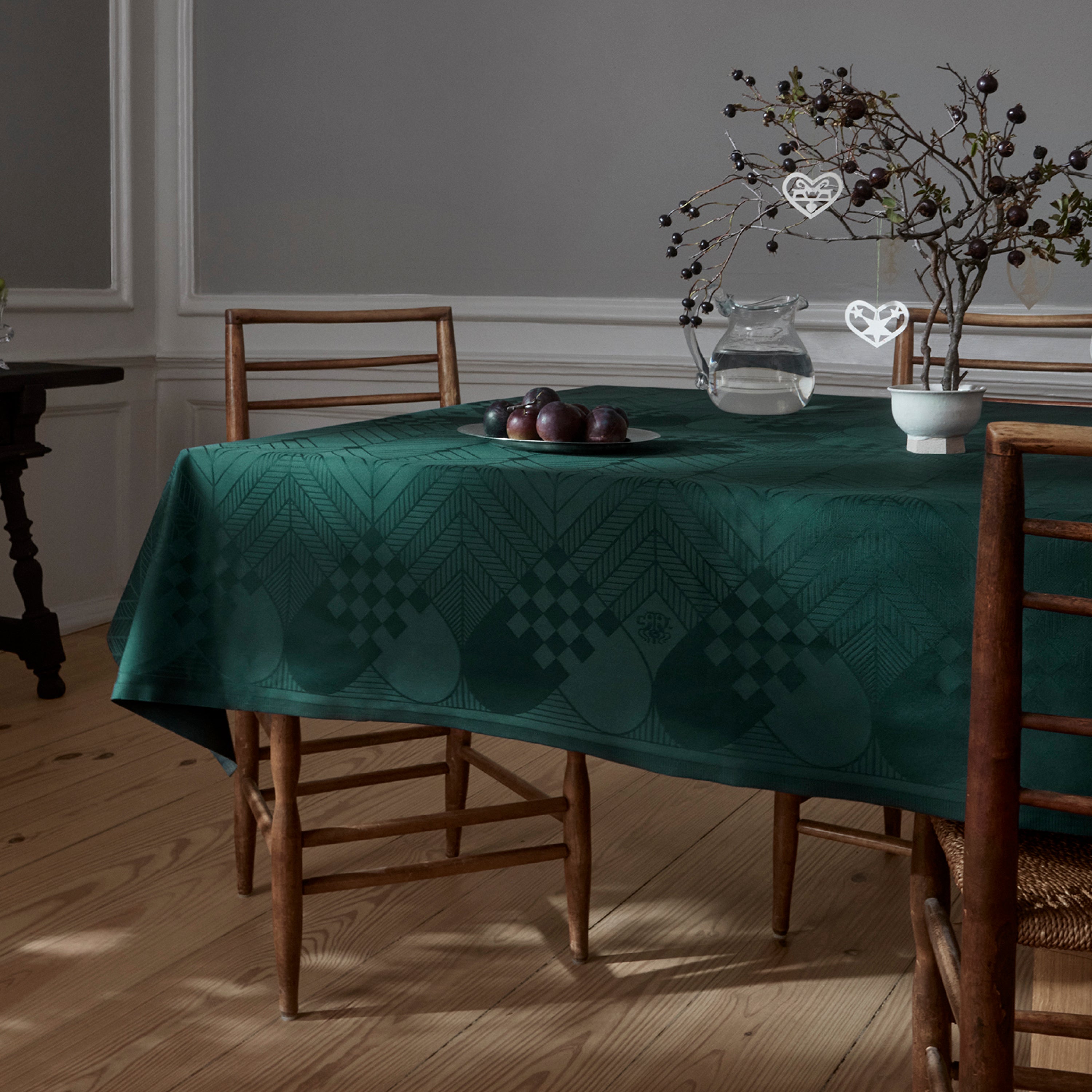 I många familjer har vår ikoniska julduk blivit en oumbärlig del av julhelgen. Julduken med sina fina julhjärtan är en nostalgisk signaturdesign i damastkollektionen. Det är en exklusiv duk som många växer upp med och för vidare till nästa generation.