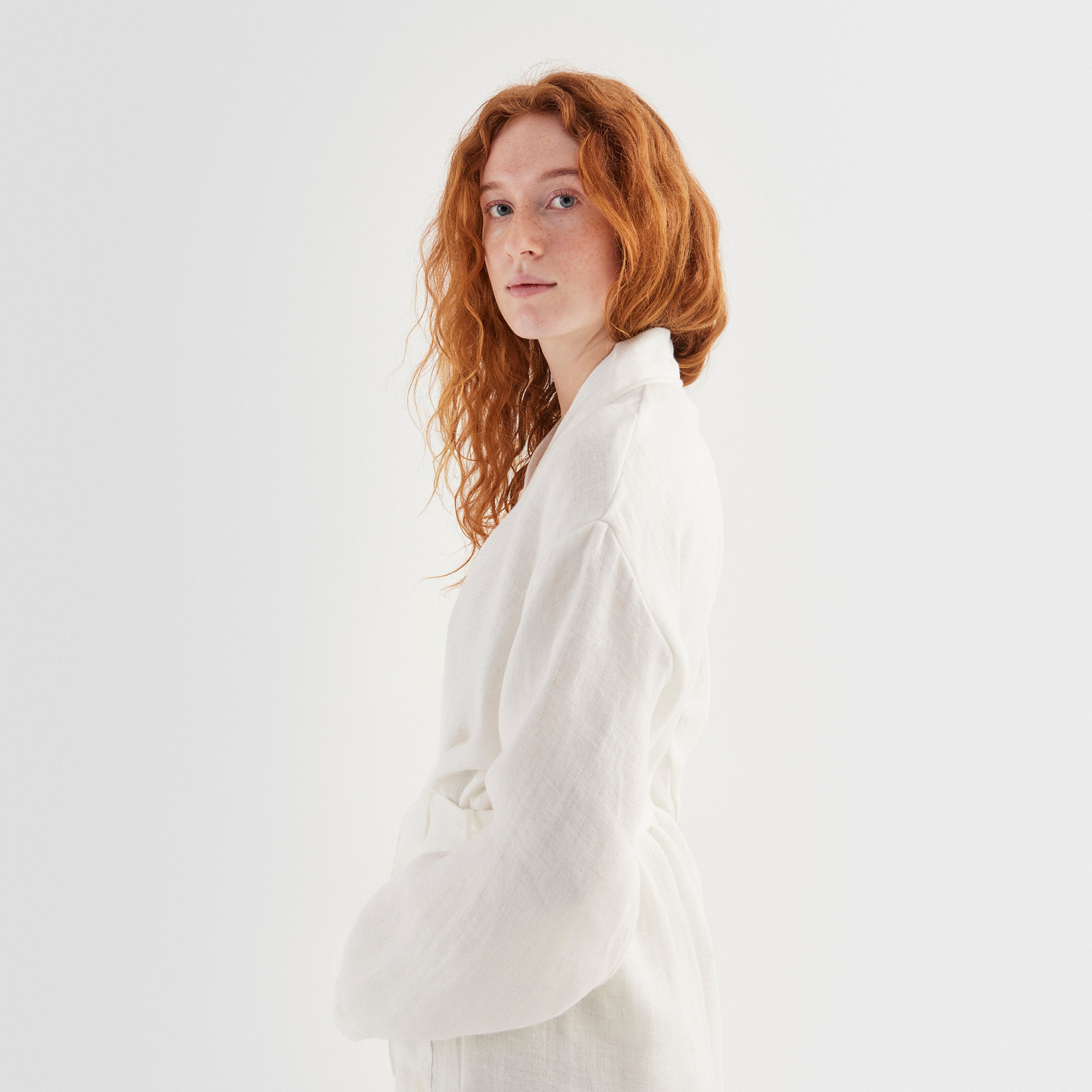 Den vita färgen gör vår Linen kimono till en stilren klassiker. I vitt får kimonon ett extra lätt och härligt uttryck som passar alla säsonger och årstider.