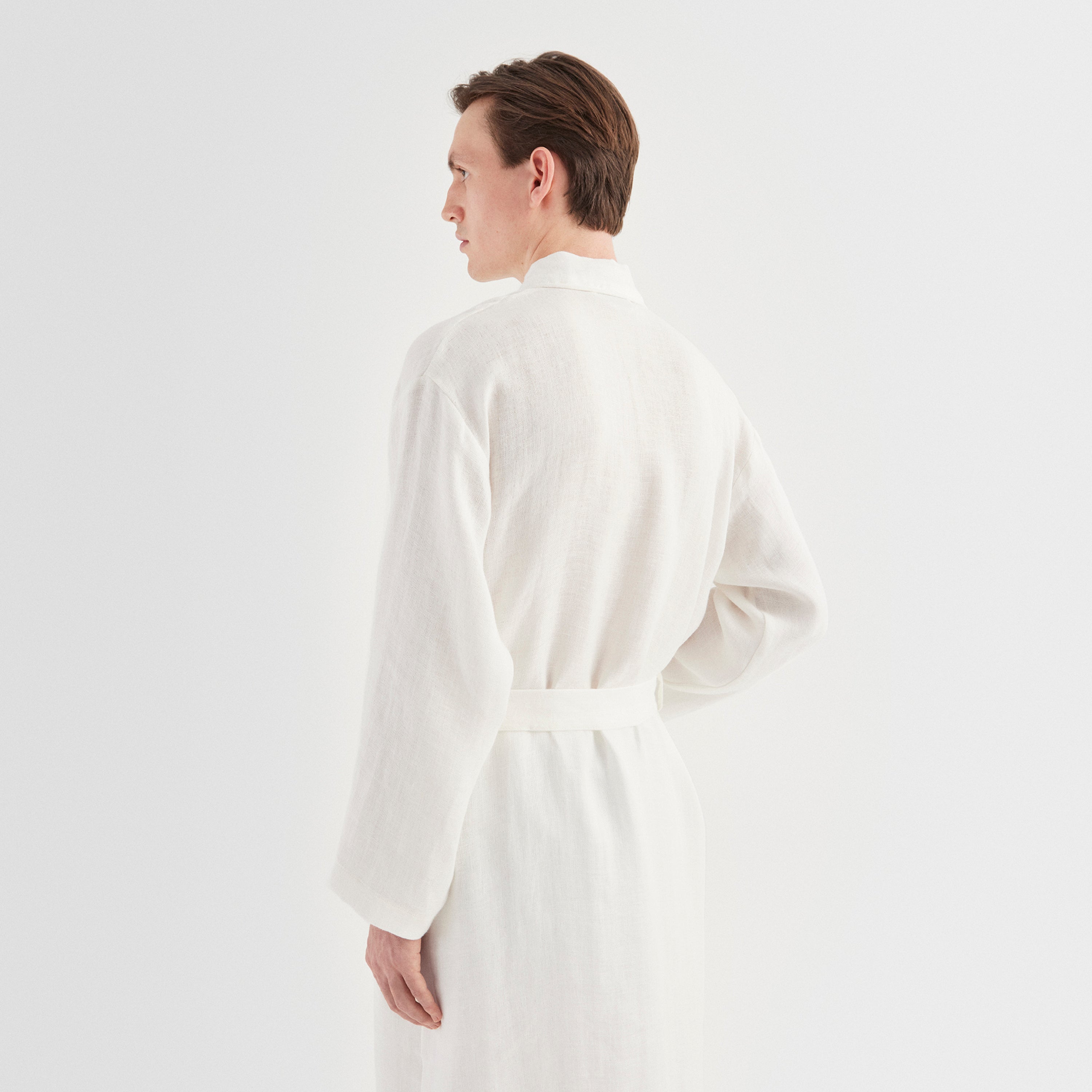 Vår Linen kimono är vävd i 100 procent linne och har skapats med fokus på funktion, kvalitet och skönhet. Den klassiska modellen och tunga linnekvaliteten gör kimonon till en favorit efter att du har badat, innan du går och lägger dig eller för en dag på stranden. Den mjuka och härliga kimonon passar både kvinnor och män.