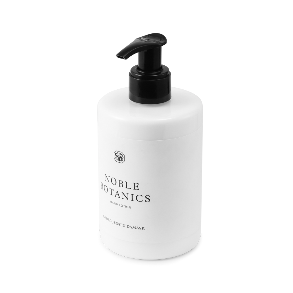 Noble Botanics handlotion från Georg Jensen Damask är berikad med vårdande bomullsextrakt och noter av rosmarin, geranium och patchouli. Massera försiktigt in den i huden på händerna för en stunds välbefinnande.
