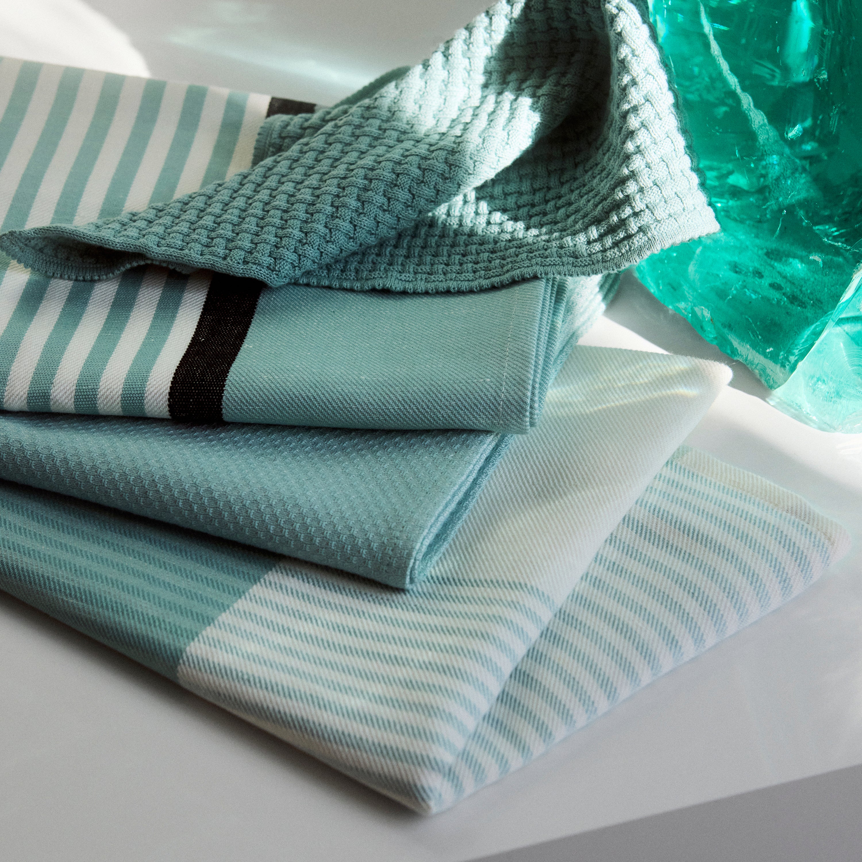 Designern Susanne Nors har skapat disktrasan Nors med inspiration från historiska vävtekniker. En funktionell och tidlös design skapad med fokus på bindningar och kvaliteter. Disktrasans speciella våffelvävning och det högkvalitativa materialet i 100 % bomull ger disktrasan optimal absorptionsförmåga. Den klara blågröna färgen Deep Glass är inspirerad av färgen på råglas.
