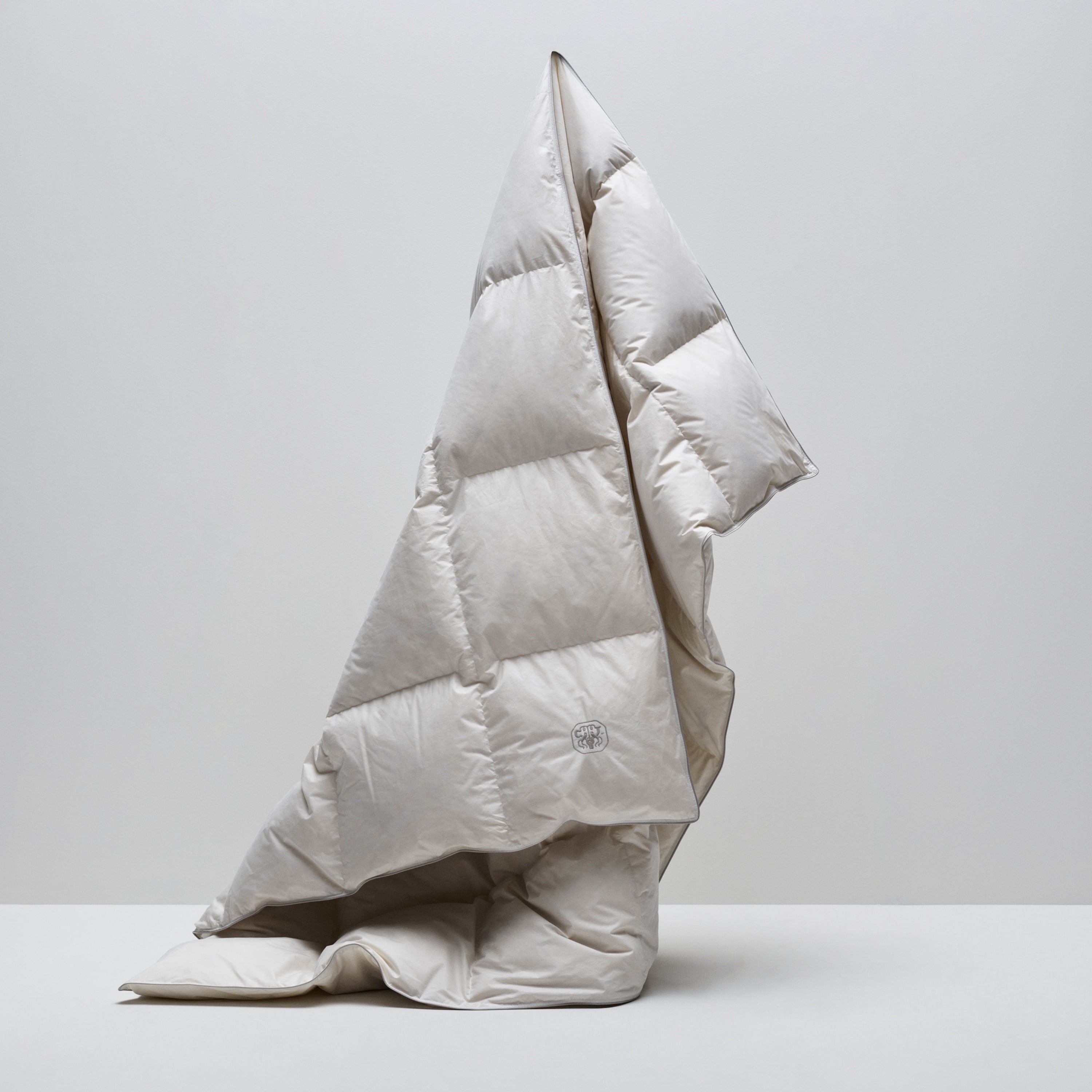 Täcket är försett med en broderad ikonisk Georg Jensen Damask-logotyp, en symbol för den kvalitet och omsorg Georg Jensen Damask står för.
