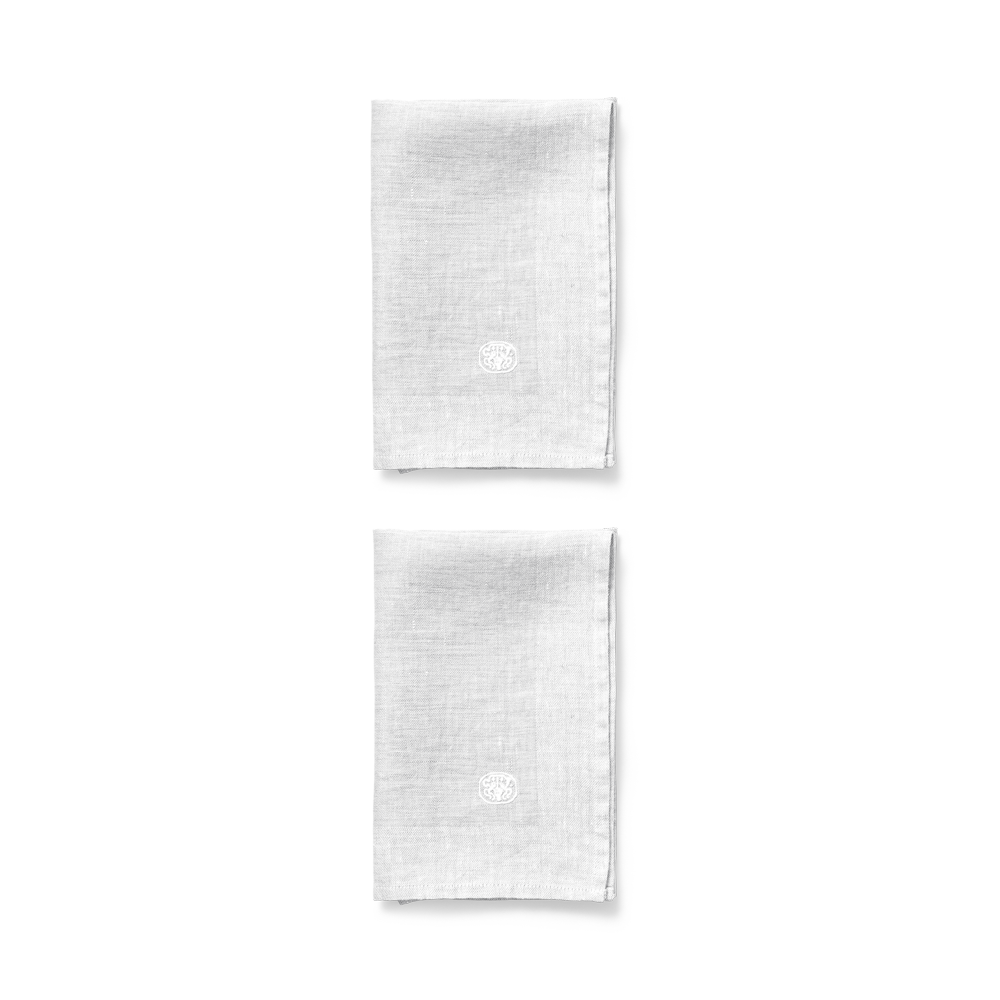 Med sin rena design är den grå linneservetten med broderad logotyp ett vackert tillskott till dukningen. Den passar mycket bra för klassisk dukning men kan också skapa värde och vara en estetisk upplevelse i mer informella sammanhang, exempelvis när det inte ligger duk på bordet. Lika snygg till stora middagar som enkel frukost eller på bordet i trädgården.