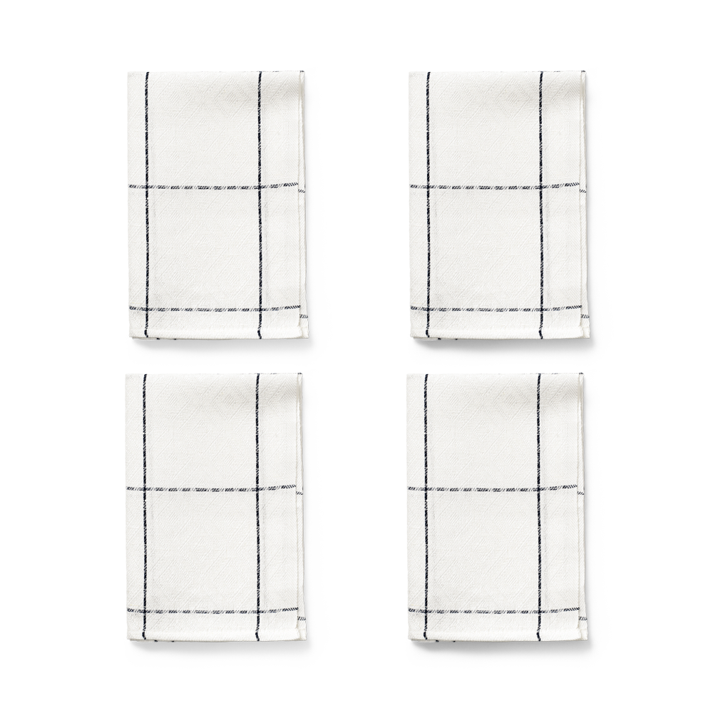Lyxiga damastservetter i linne och bomull med stora franska rutor och ett anmärkningsvärt djup i vävningen. De råvita servetterna är handvävda i ett vackert mönster baserat på traditionella vävmetoder, och är som tagna ur det antika franska linneskåpet.