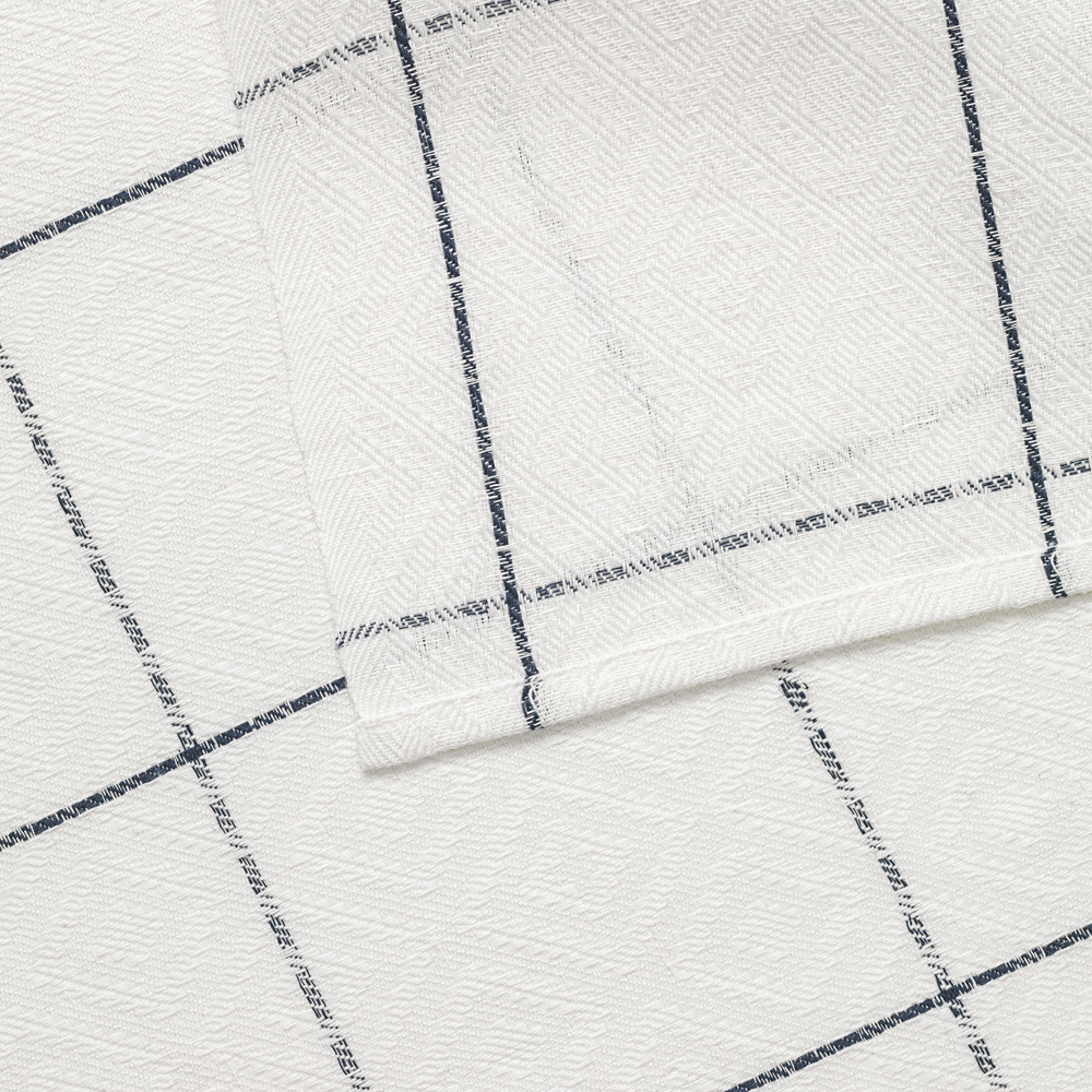I färgen White/Navy tar damastservetterna en fransk lätthet och sinnlighet med till bords i form av de på samma gång flärdfria och eleganta rutorna, som tonar fram med mörkblå tråd som ett extra lag i gåsögonmönstret. Det är en exklusiv servett som tack vare sitt fina hantverk lätt kan vara lite skrynklig och ingå i en informell dukning.