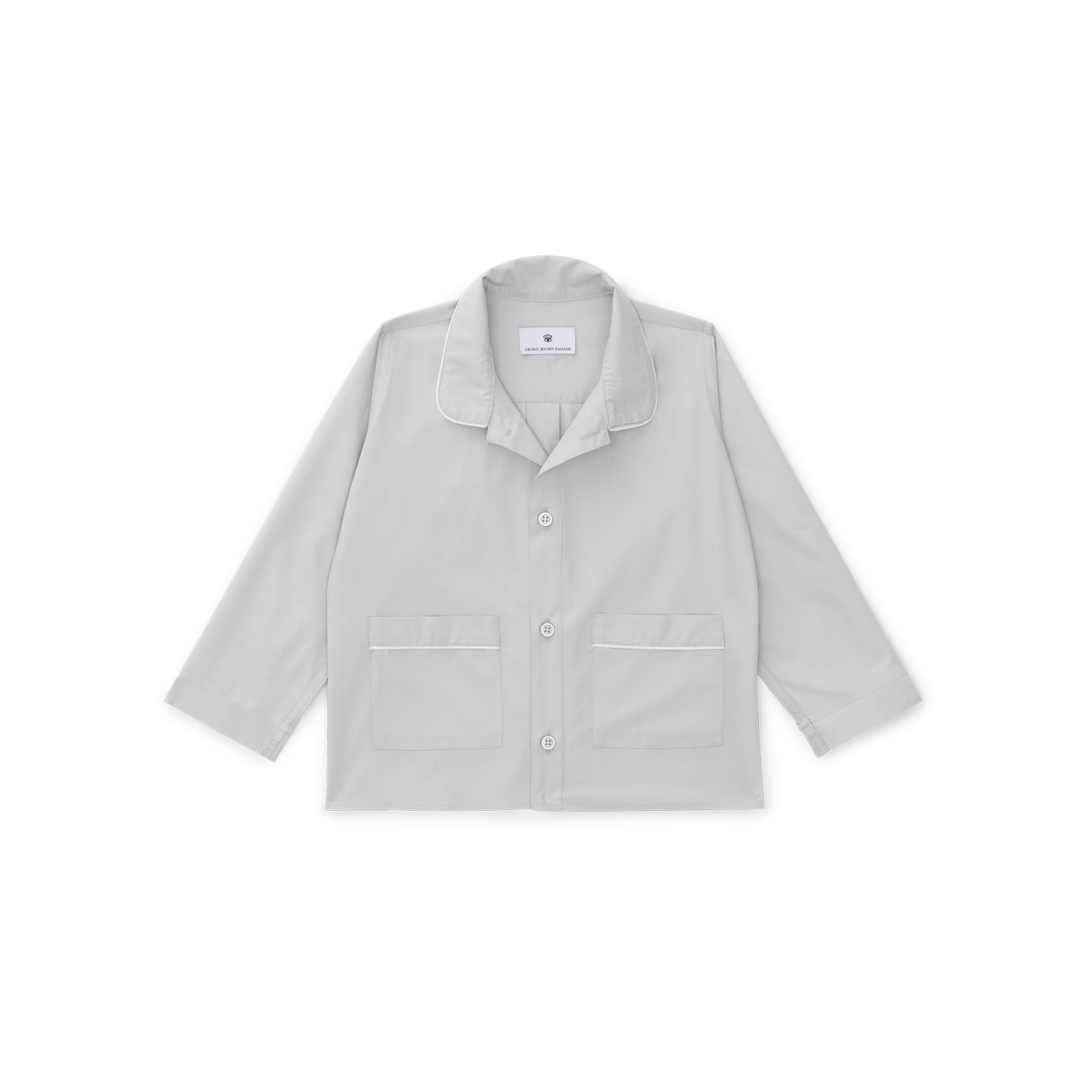 Unisexpyjamas för barn i percalevävd Supima-bomull. Platinium Grey är en ljus och lugn nyans av grått.