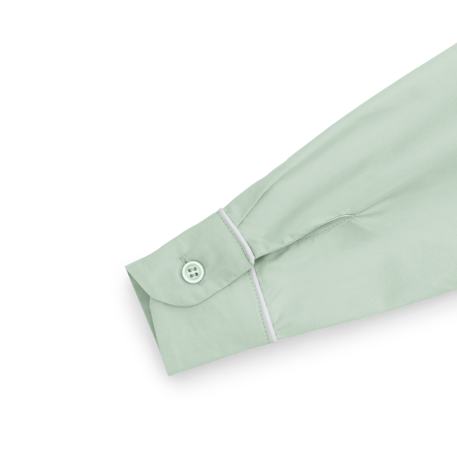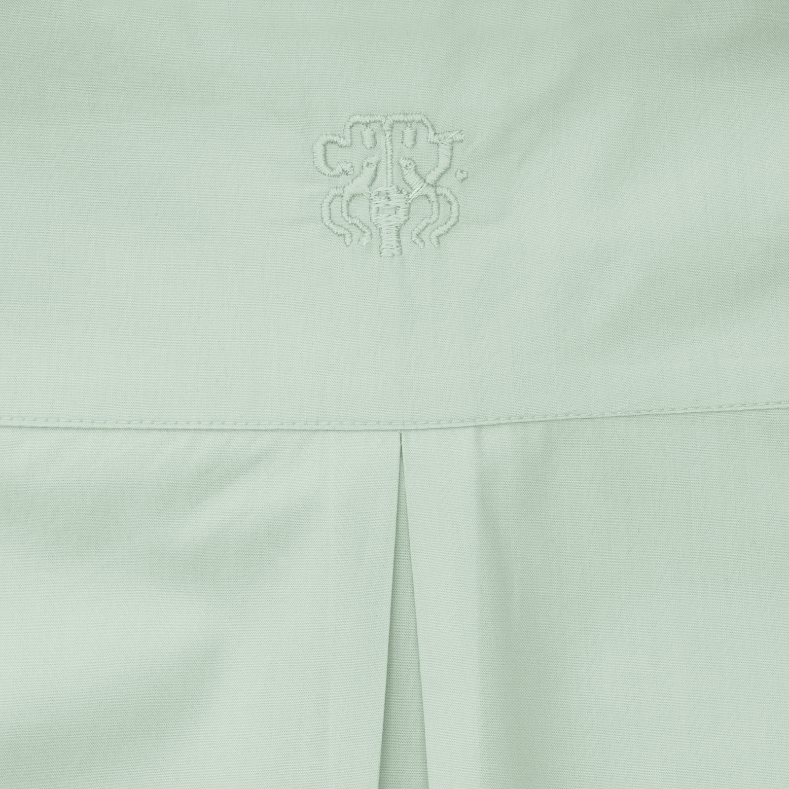 Skjortklänning för barn vävd i Supima bomull percale. Den klara grönblå färgen, Glass Green, är inspirerad av färgen på råglas.