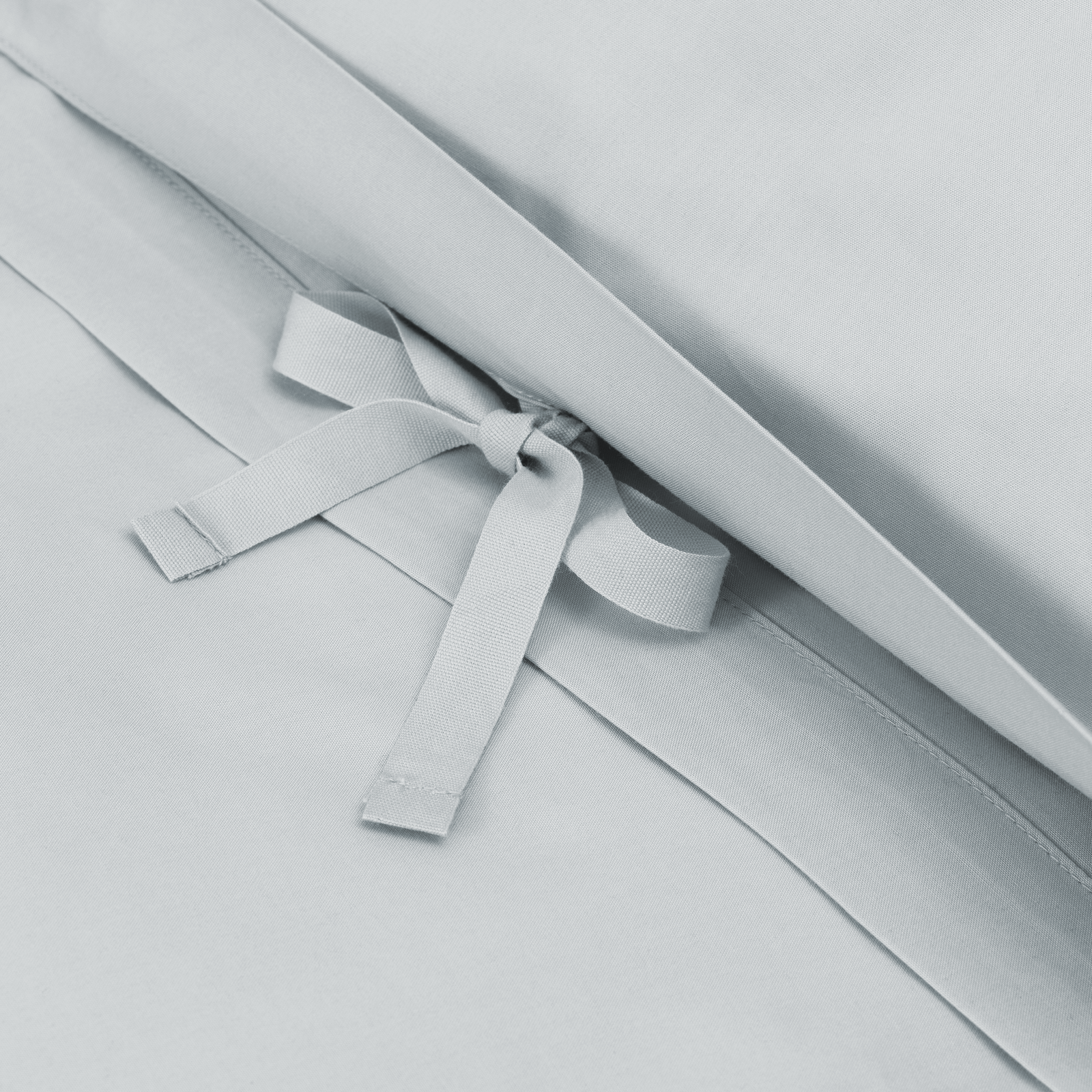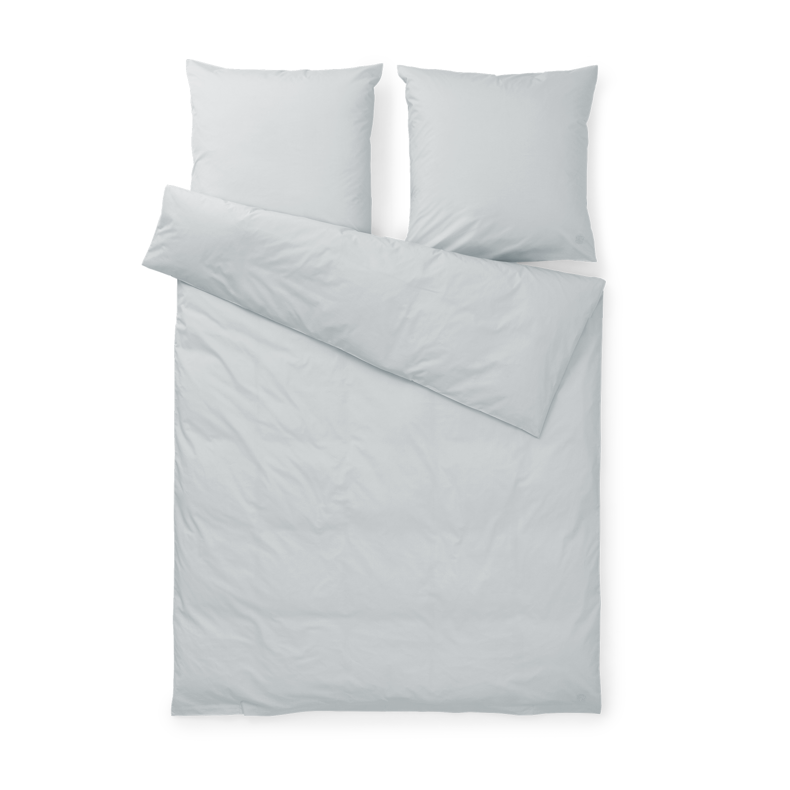 Påslakanet har knytband och örngotten kuvertstängning. Bäddsetet har Georg Jensen Damasks ikoniska logotyp som ett diskret broderi. Arctic är en ljus och sval blågrå nyans.