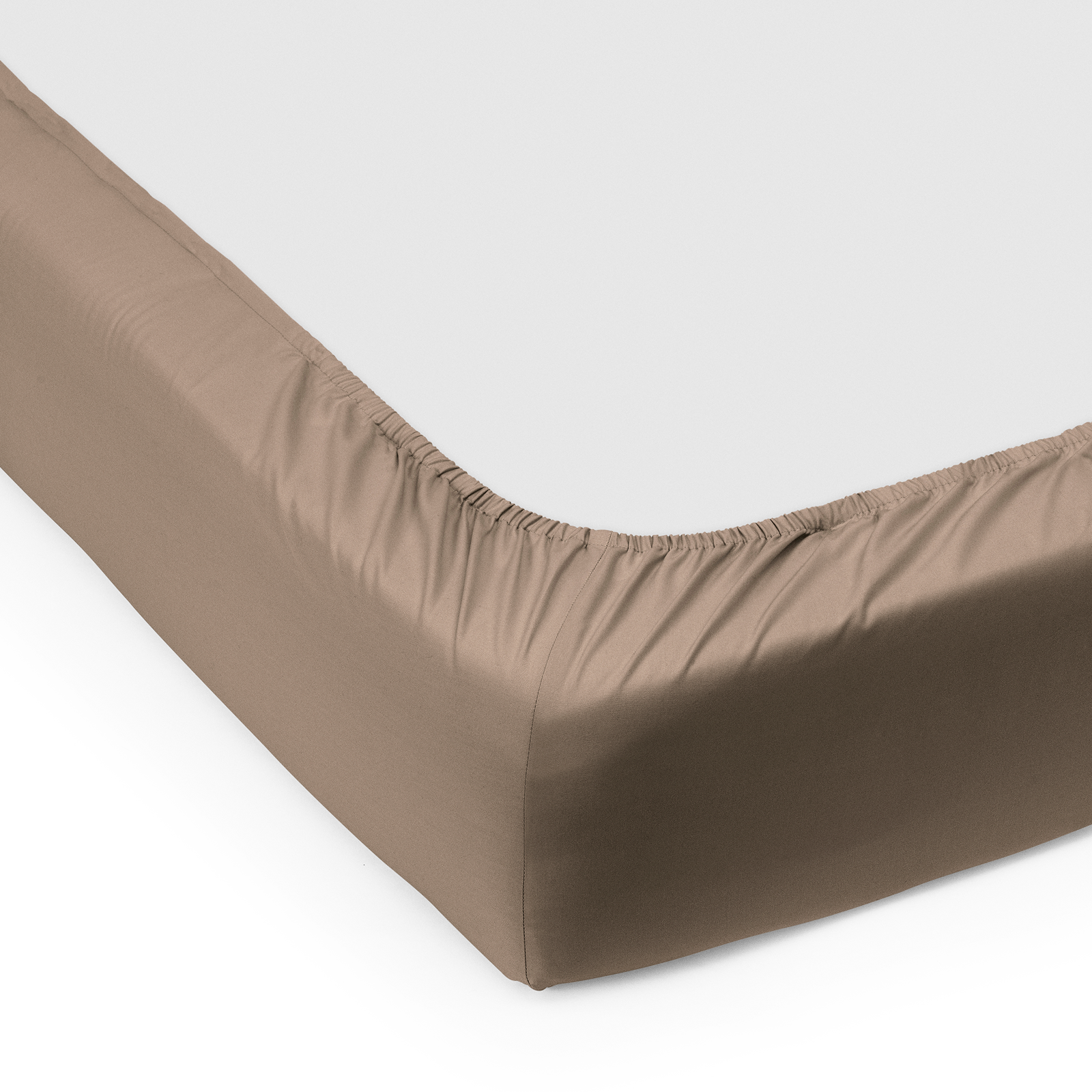 Boxlakanet är formsytt och har gummiband i hörnen. På lakanet finns Georg Jensen Damasks ikoniska logotyp som ett diskret broderi. Walnut är en djup och nötaktig brun färg.
