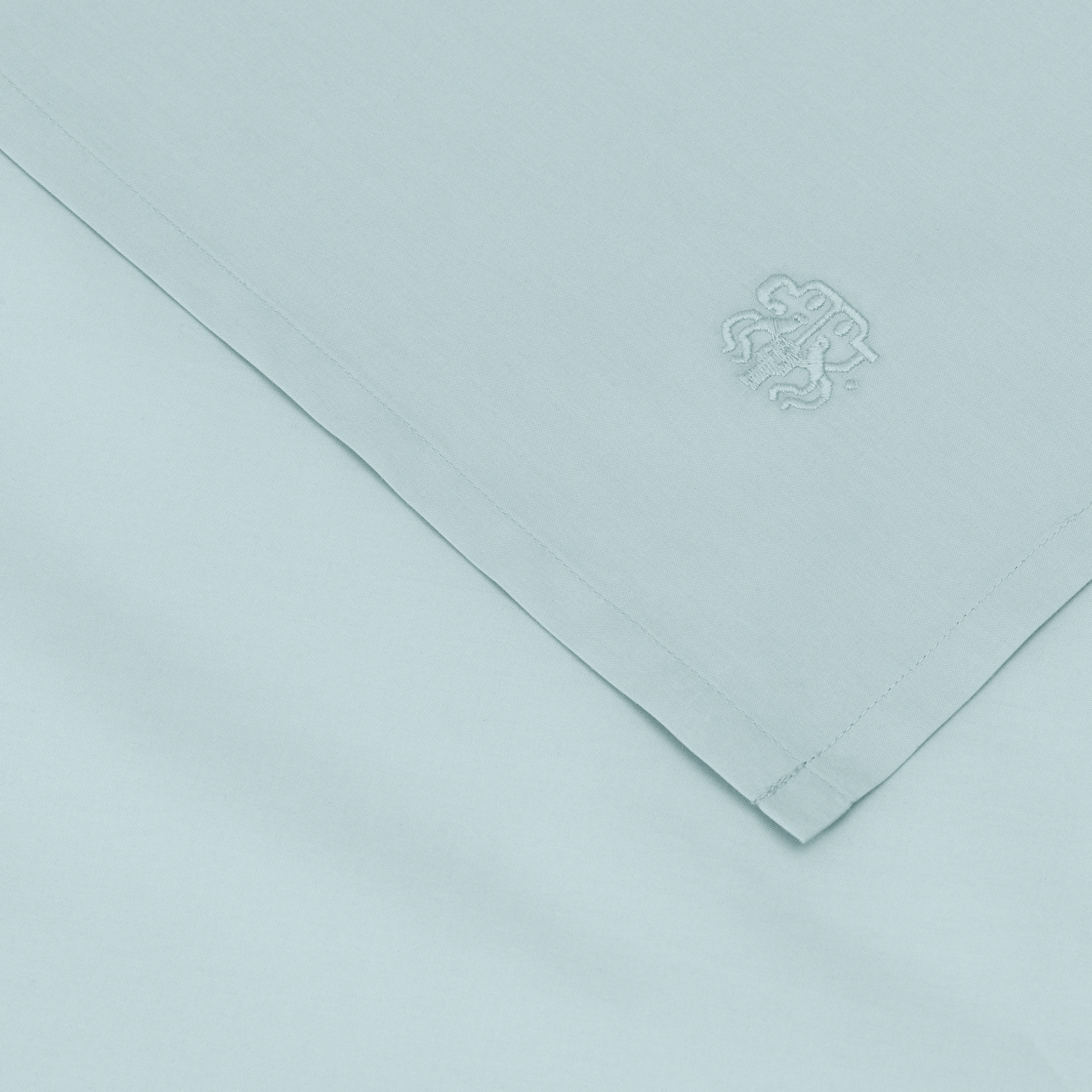 Det klassiska platta lakanet kan användas på alla sängar men rekommenderas inte för höj- och sänkbara sängar. På lakanet finns Georg Jensen Damasks ikoniska logotyp som ett diskret broderi. Minimal Blue är en mycket ljus variant av ljusblå med en lätt ton av aqua.