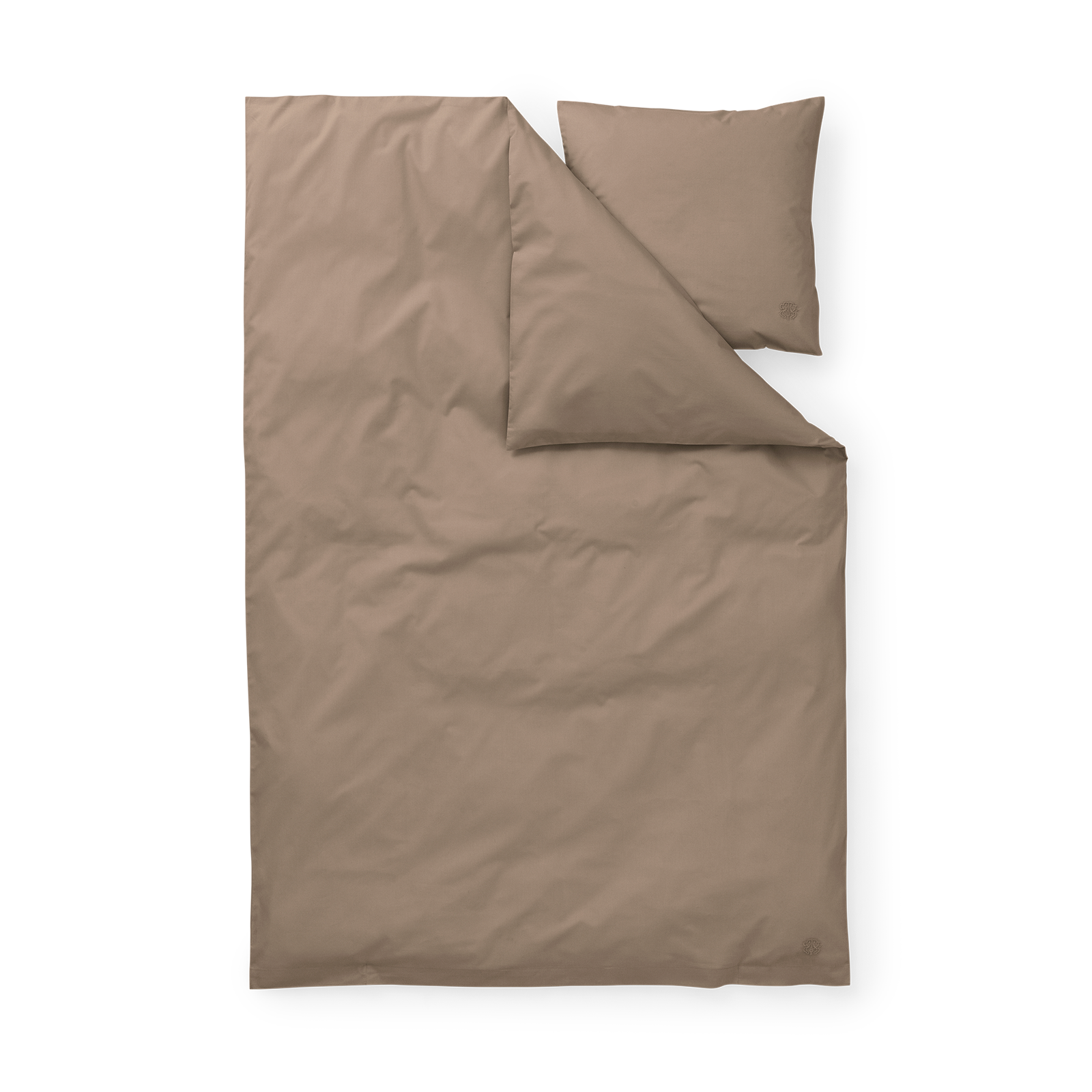 Påslakanet har knytband och örngottet kuvertstängning. Bäddsetet har Georg Jensen Damasks ikoniska logotyp som ett diskret broderi. Walnut är en djup och nötaktig brun färg.