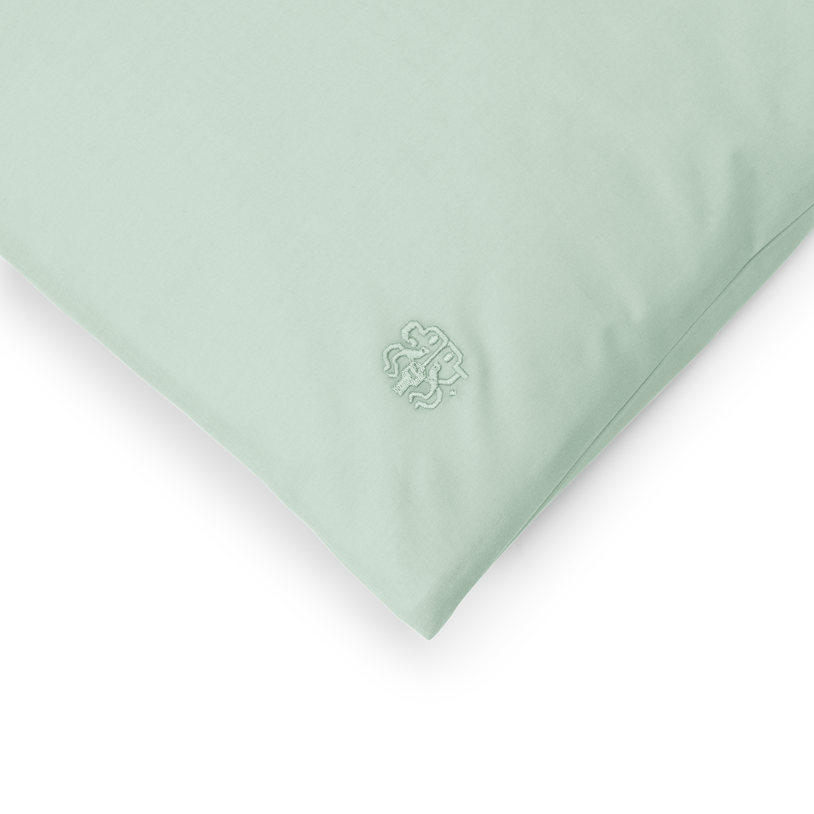 Örngottet har kuvertstängning och är försett med en diskret broderad Georg Jensen Damask-logotyp. Den klara grönblå färgen Glass Green är inspirerad av färgen på råglas.