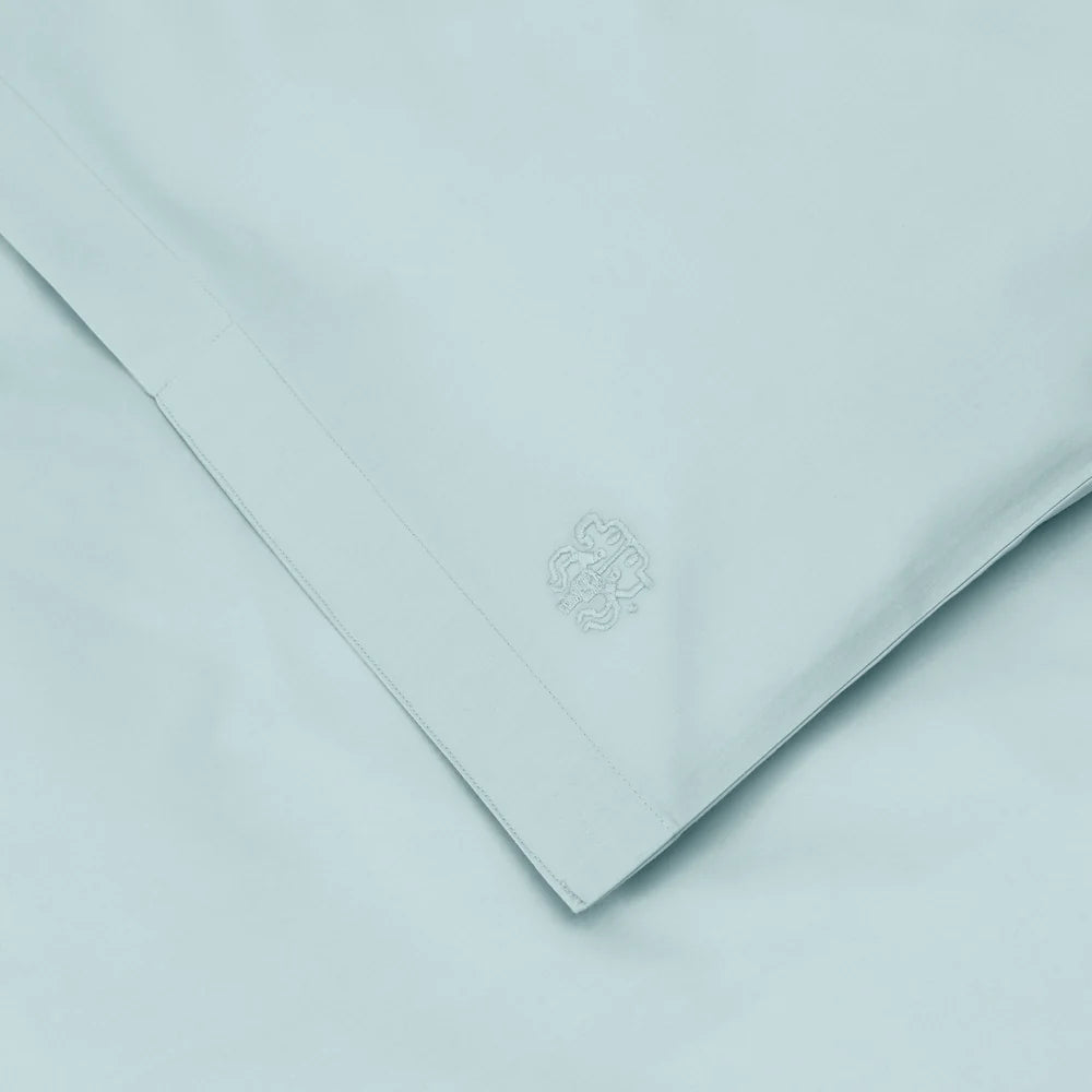 Örngottet har kuvertstängning och är försett med en diskret broderad Georg Jensen Damask-logotyp. Minimal Blue är en mycket ljus variant av ljusblå med en lätt ton av aqua.