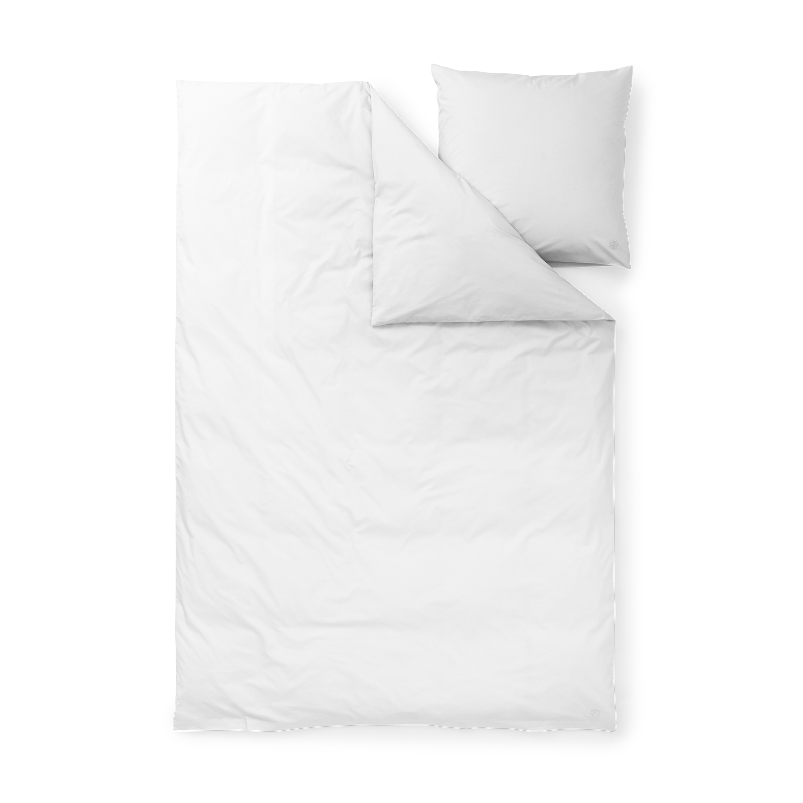 Påslakanet har knytband och örngottet kuvertstängning. Bäddsetet har Georg Jensen Damasks ikoniska logotyp som ett diskret broderi. Färgen White är en ren vit färg.
