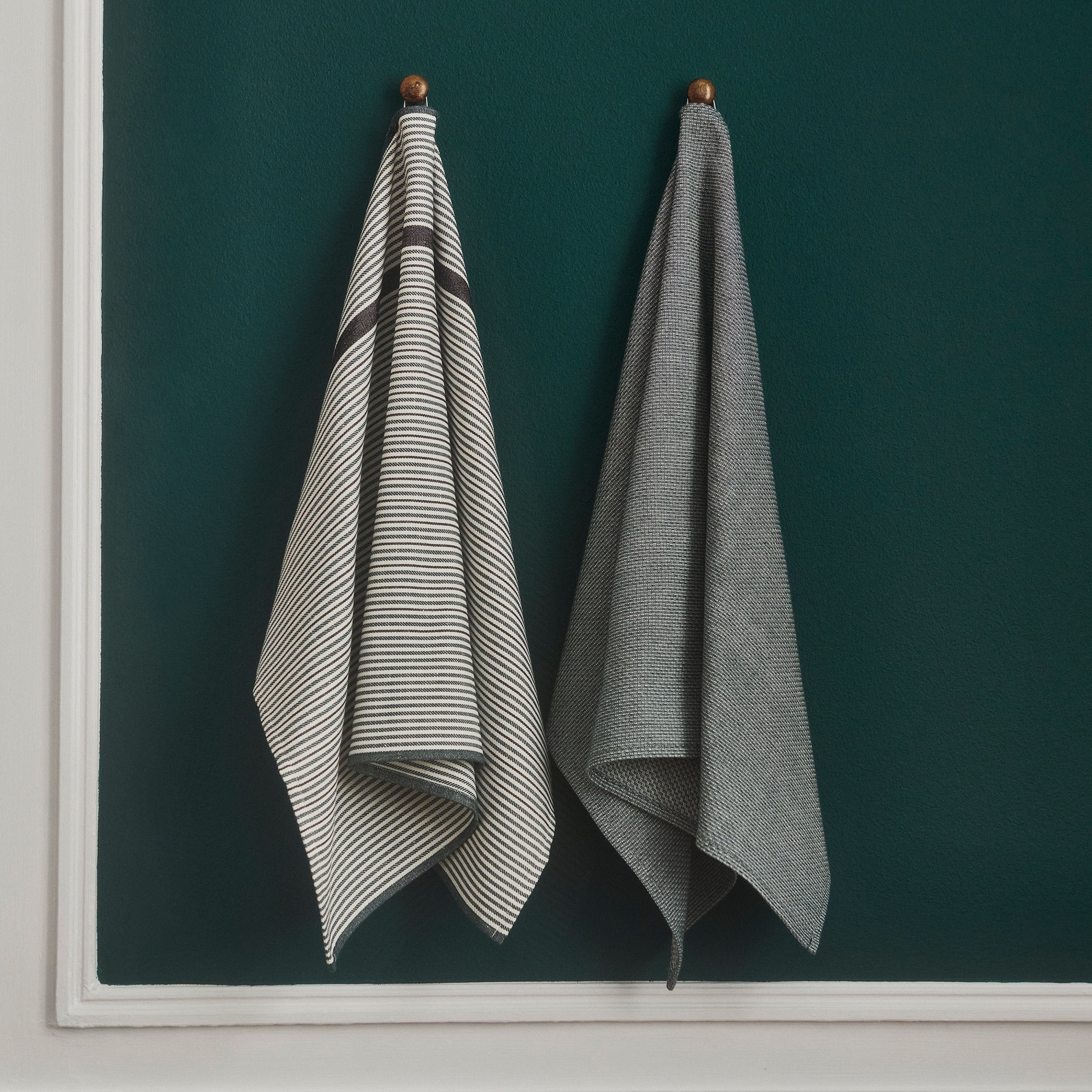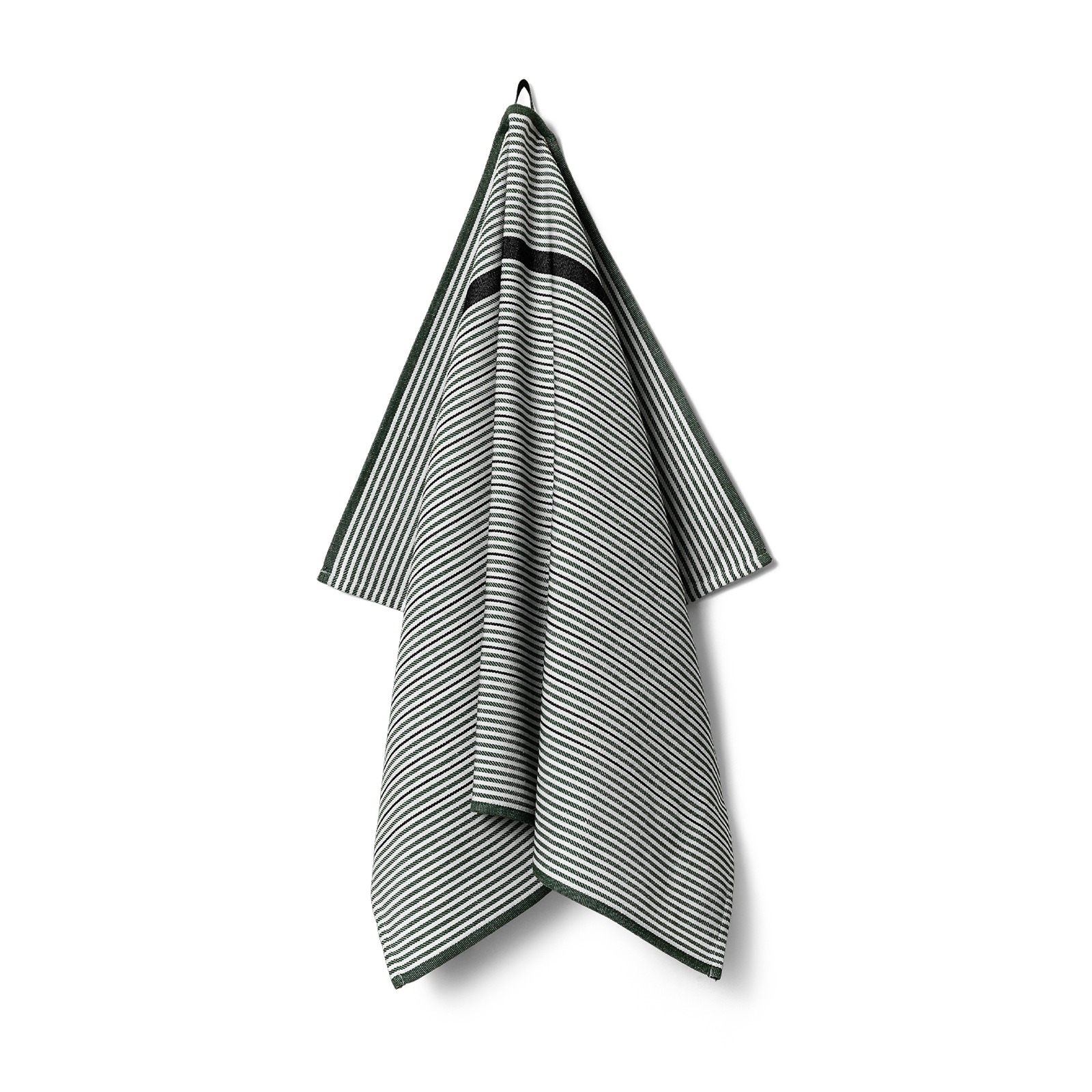 Comet är en enkel diskhandduk med klassiska ränder. Den är vävd i en blandning av bomull och lin, vilket ger optimal uppsugningsförmåga. I färgen Evergreen kombineras de smala, mörkgröna ränderna med svart för ett elegant uttryck.