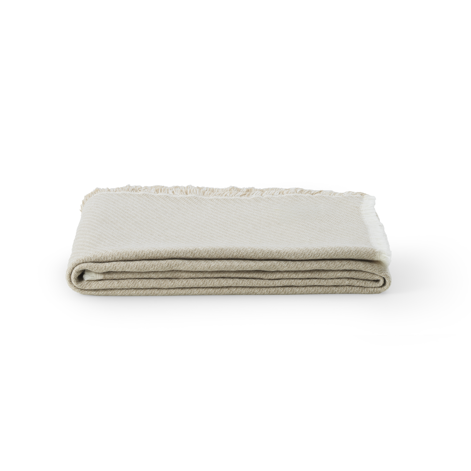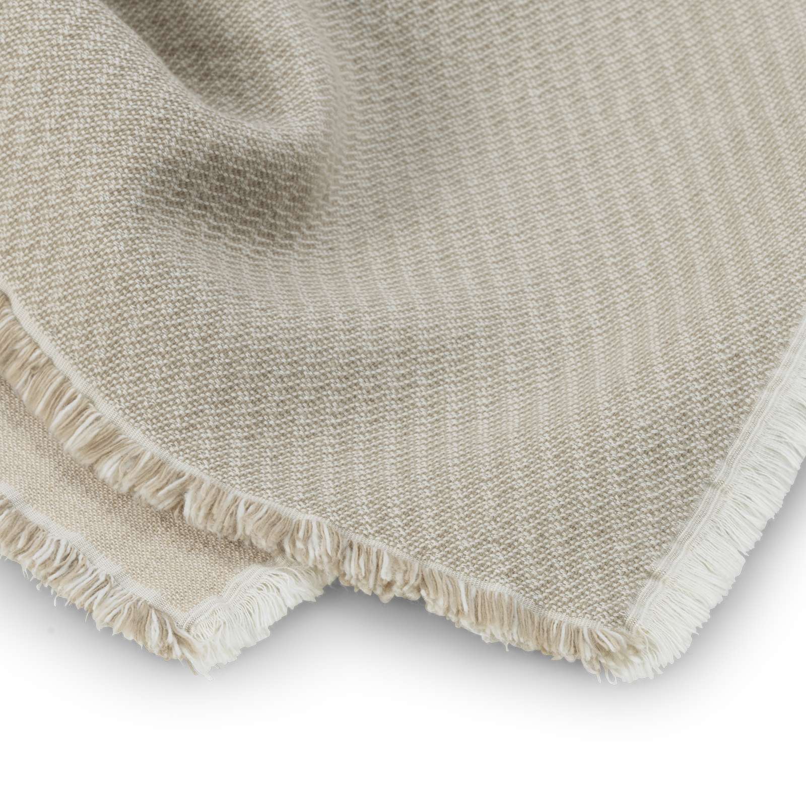 Elegant pläd i 100 % mjuk bomull. Vävningen ger Weaver ett diskret strukturerat mönster som ramas in av korta fransar längs kanterna. Färgen Sand är en ljus nyans av beige.